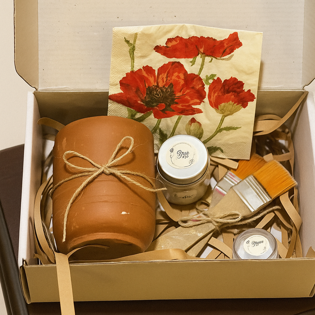 Unleash your creativity with our Decoupage DIY Kit – the perfect beginner-friendly craft set to transform an ordinary terracotta pot into a one-of-a-kind art piece. Whether you’re exploring a new hobby, looking for a mindful activity, or gifting something unique, this kit has everything you need to get started.